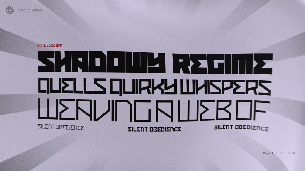 Paperkut is an exploration of styles spanning many modernist practices, and serves as a bridge between many approaches to visual minimalism. All by adhering to a geometric structure, and seamlessly blending the harmony of De Stijl principles with the dynamic energy of Constructivism. In keeping with this spirit of geometric restraint, Paperkut Family includes two bitmap weights.